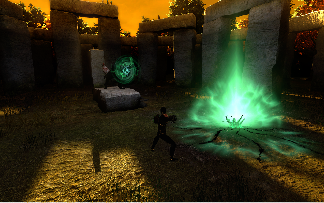Irusan was a collaboration between myself and senior designer Tanya Short for the Halloween seasonal event. She designed the seasonal event and its surroundings, including the main villain, Irusan, featured in this encounter. She wanted the fight in Stonehenge to take place both in the day and at night, and I designed and implemented the encounter based on these time-shifts and Irusan’s cat-like nature.